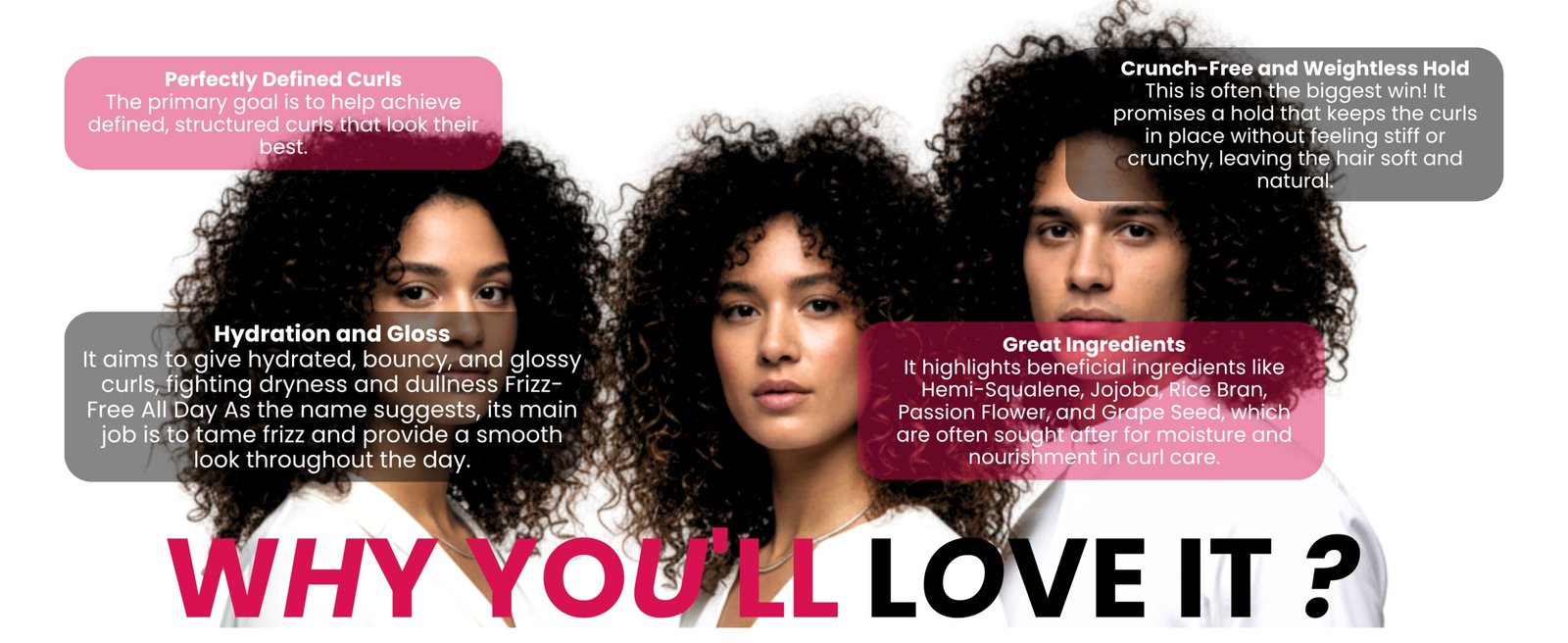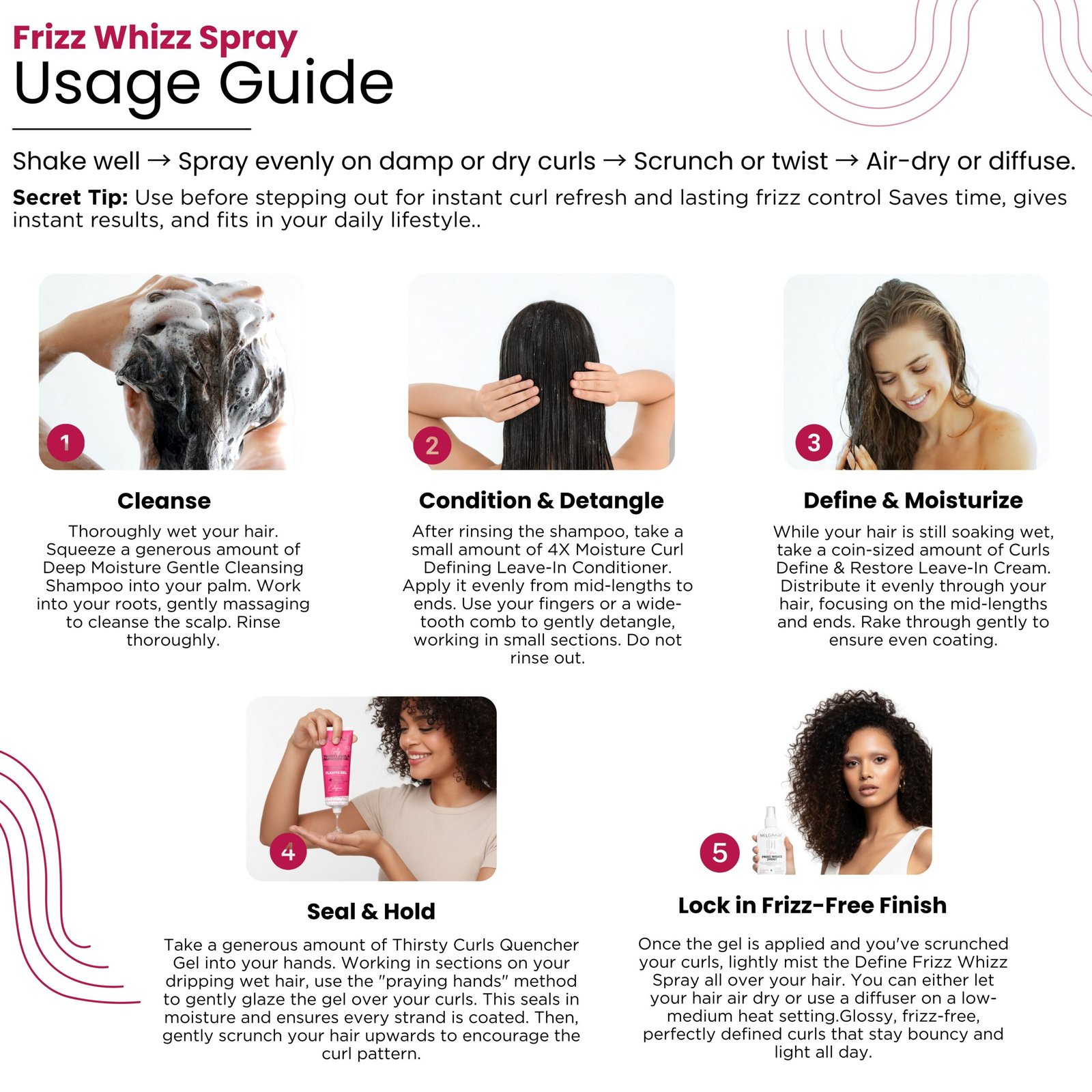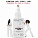 Frizz? We don’t know her! This Frizz Whizz Spray is your Frizz-Free, Bouncy Hydrate Bi-Phase Mist. It’s a lightweight “Twist & Mist” formula that ensures perfectly defined, hydrated curls. Infused with Hemi-Squalene, Jojoba, Rice Bran Extract, Flower, and Grape Seed, it provides a crunch-free, weightless hold, leaving your curls glossy and frizz-free all day.
